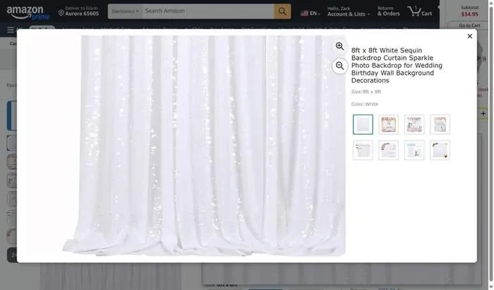 White Sequin Backdrop 8x8ft. Sparkle finish, great for weddings and birthdays. Included in Photo Booth Full Setup — also available as an individual add-on backdrop for $15/weekend.